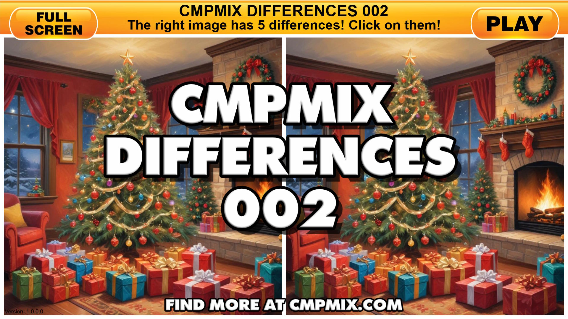 This is the second game of our Cmpmix Differences series, and it’s still Christmas-themed. This time, the subject is a Christmas tree with many presents in a warm, comfortable room. Other games in this series will follow. Stay tuned!